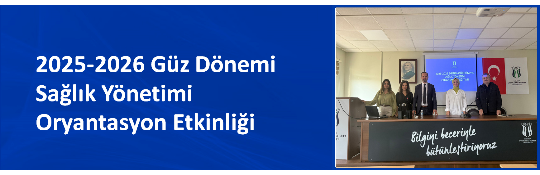 DUYURULARTümü 06 Kasım “Hastane Bilgi Yönetim Sistemi ve Bilgi İşlem Altyapısı” başlıklı sektörle buluşma etkinliği 27 Ekim TÜBİTAK-2209-A Öğrenci Projesi Kapsamında Akran Buluşması 15 Ekim Mezun Öğrenci Buluşması Etkinliği 24 Eylül İlk Ders Etkinliği 21 Ağustos Sağlık Yönetimi Bölümü 2025-2026 Güz Dönemi Haftalık Ders Programı (GÜNCEL) ETKİNLİKLERTümü 30 Ekim TÜBİTAK 2209-A Öğrenci Projesi akran buluşması gerçekleştirildi 17 Ekim Mezun Öğrenci Buluşması Etkinliği Gerçekleştirildi 10 Haziran “Bir Kitap Bir İnsan Projesi” gerçekleştirildi 10 Haziran Sağlık Yönetimi bölümü tarafından spor etkinliği gerçekleştirildi 02 Haziran "Özel Hastanelerde Kurumsal Pazarlama ve Markalaşma Süreci" konulu söyleşi gerçekleştirildi HABERLERTümü 31 Temmuz 2023-2024 Akademik Yılı Mezuniyet Töreni'nde Bölüm Birincimiz Ümran Tepe Plaketini Aldı 16 Mayıs SUBÜ Kariyer Zirvesi ve 19 Mayıs Atatürk'ü Anma Gençlik ve Spor Bayramı Etkinlikleri 03 Mayıs Erasmus Kapsamında Kosova Heimerer College Sağlık Yönetimi Bölümü'nden Dr. Liridon Bllaca'nın Fakültemize Ziyareti Sağlık Yönetimi Bölüm Tanıtım Videosu