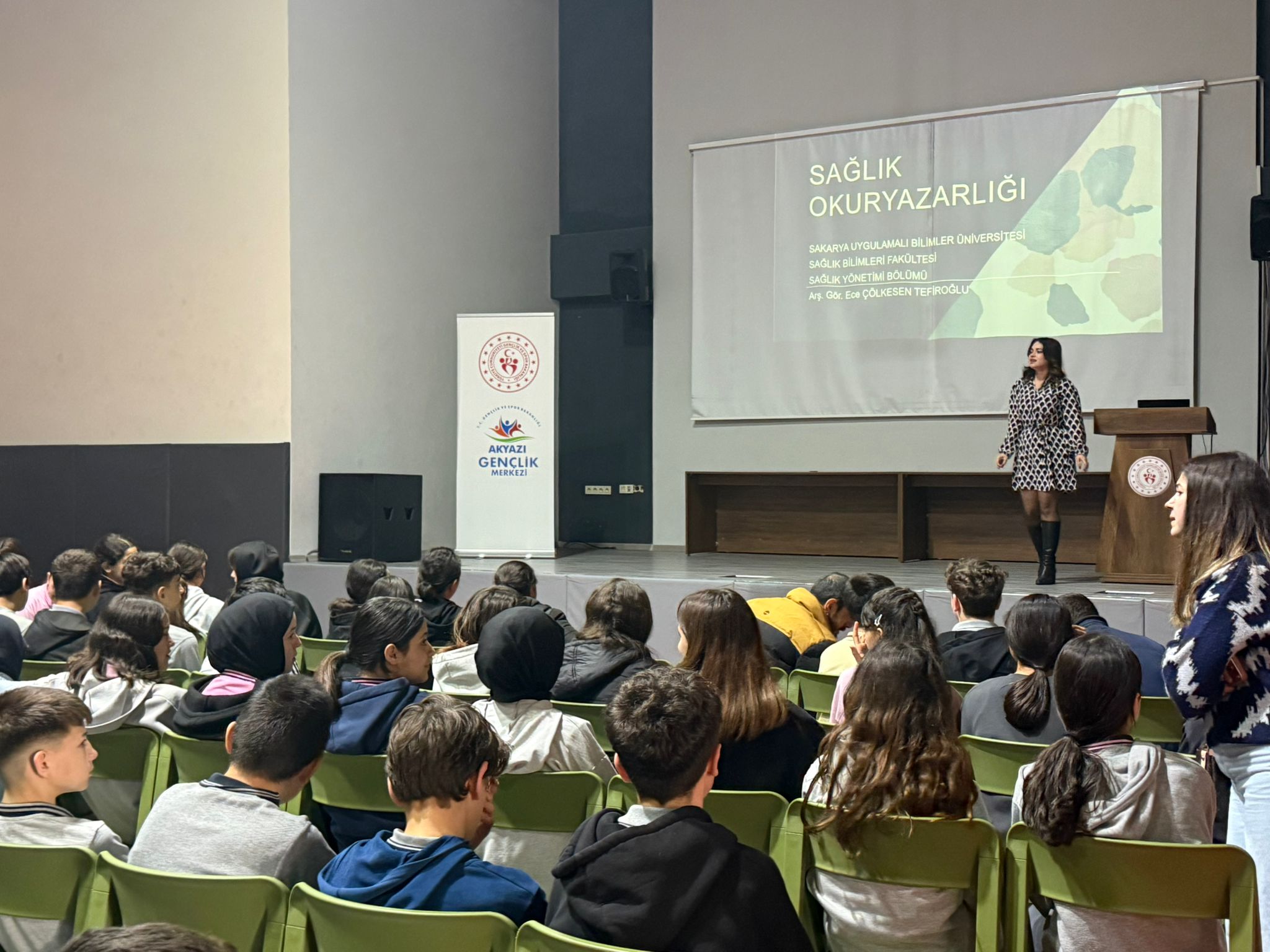 Fakültemiz Sağlık Yönetimi bölümü öğretim elemanı Arş. Gör. Ece ÇÖLKESEN TEFİROĞLU tarafından düzenlenen “Lise Öğrencilerine Yönelik Sağlık Okuryazarlığı Bilgilendirme Semineri” etkinliği, 11 Aralık 2025 Perşembe günü saat 14.00’te Akyazı Recep Tayyip Erdoğan Spor Kompleksi’nde gerçekleştirilmiştir. Hocamıza ve katılımcılarımıza teşekkür ederiz.