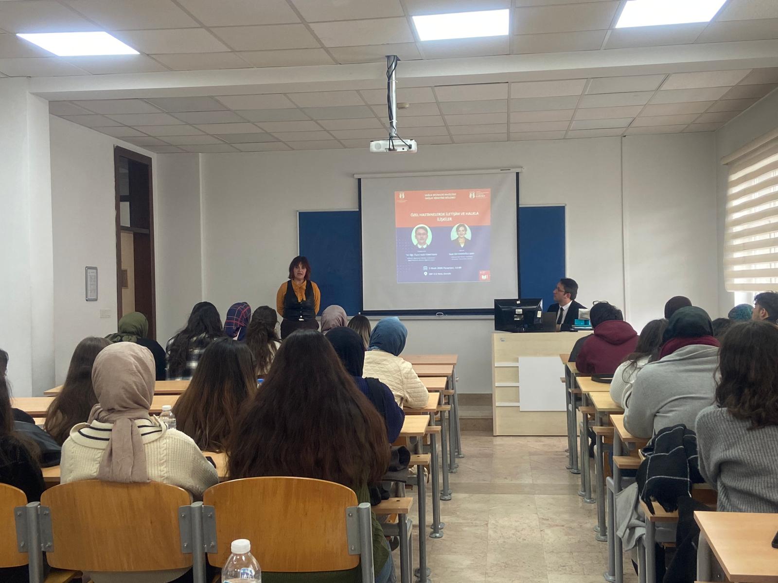 Fakültemiz Sağlık Yönetimi bölümünde Dr. Öğr. Üyesi Halil Türktemiz moderatörlüğünde, Kurumsal Pazarlama Uzmanı Ayşe Gül Kadıoğlu Sarı tarafından “Özel Hastanelerde İletişim ve Halkla İlişkiler” semineri düzenlenmiştir. Öğrencilerimize ve akademisyenlerimize katılımlarından dolayı teşekkür ederiz